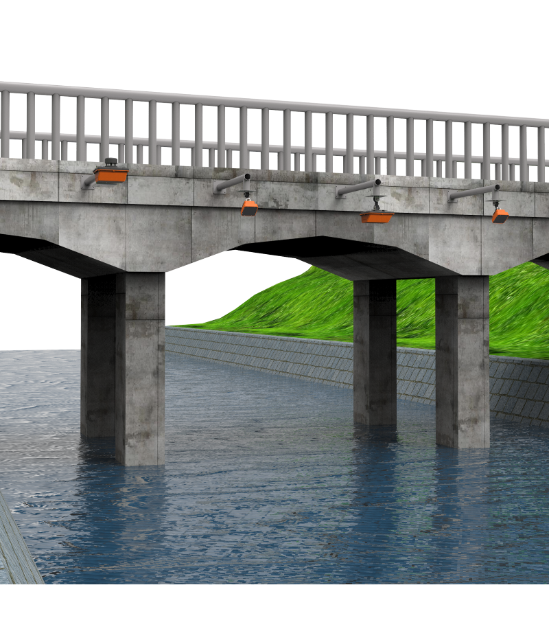Feature: Non - contact and unmanned solution during peak flood velocities and floating debris.